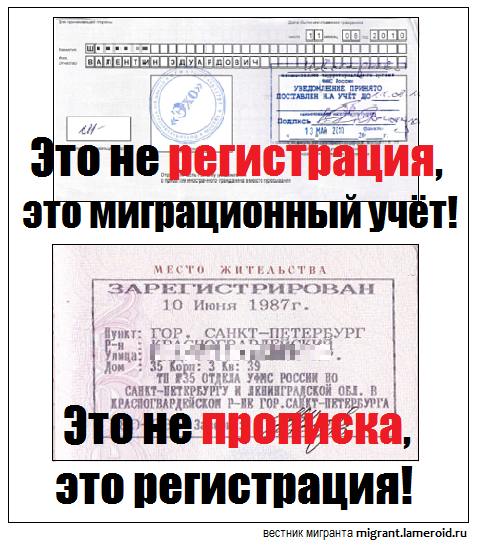 Следует запомнить! Не регистрация, а миграционный учёт, не прописка, а регистрация по месту жительства.